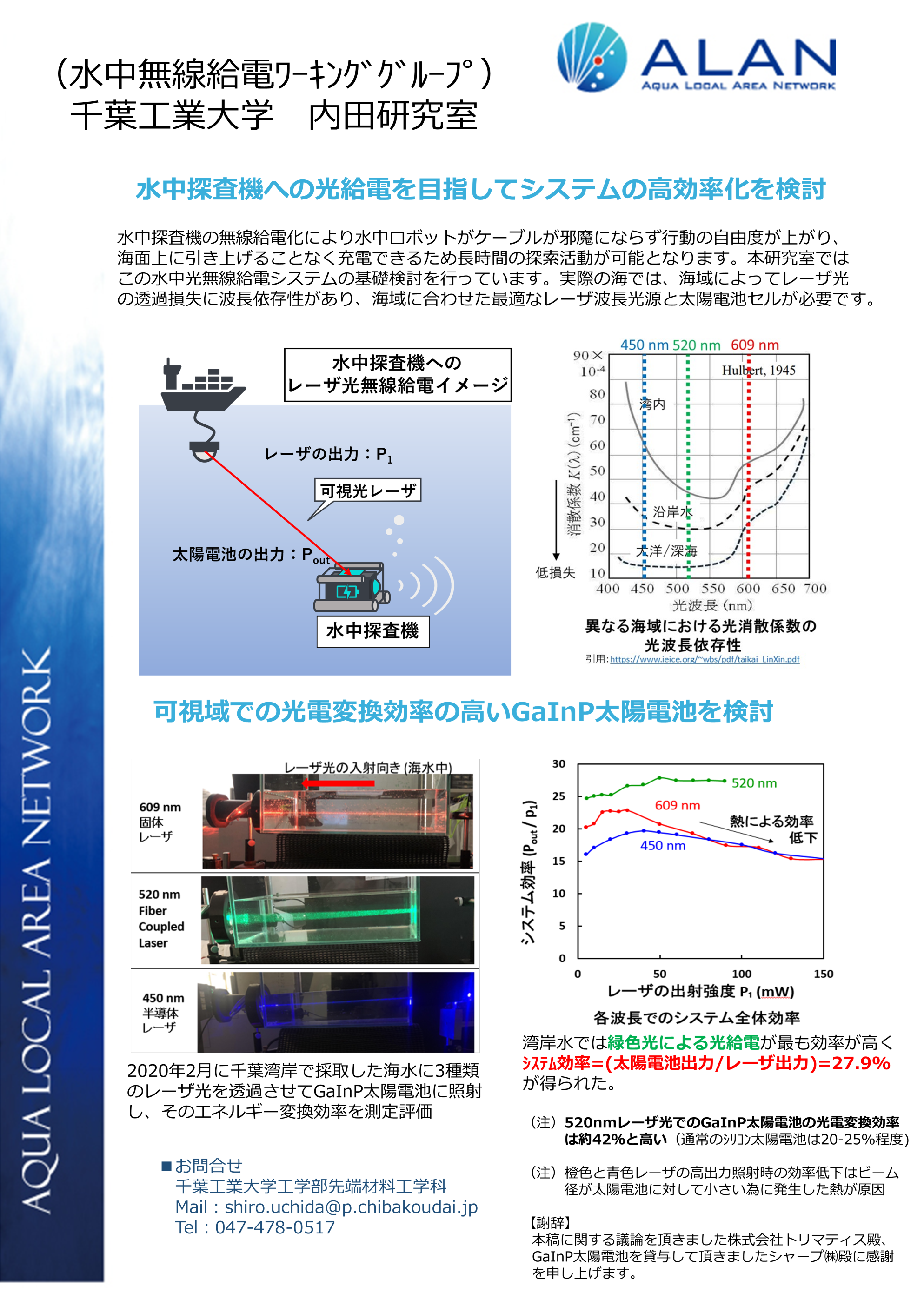 実証千葉工業大学:水中探査機への光給電を目指してシステムの高効率化を検討/可視域での光電変換効率の高いGaInP太陽電池を検討