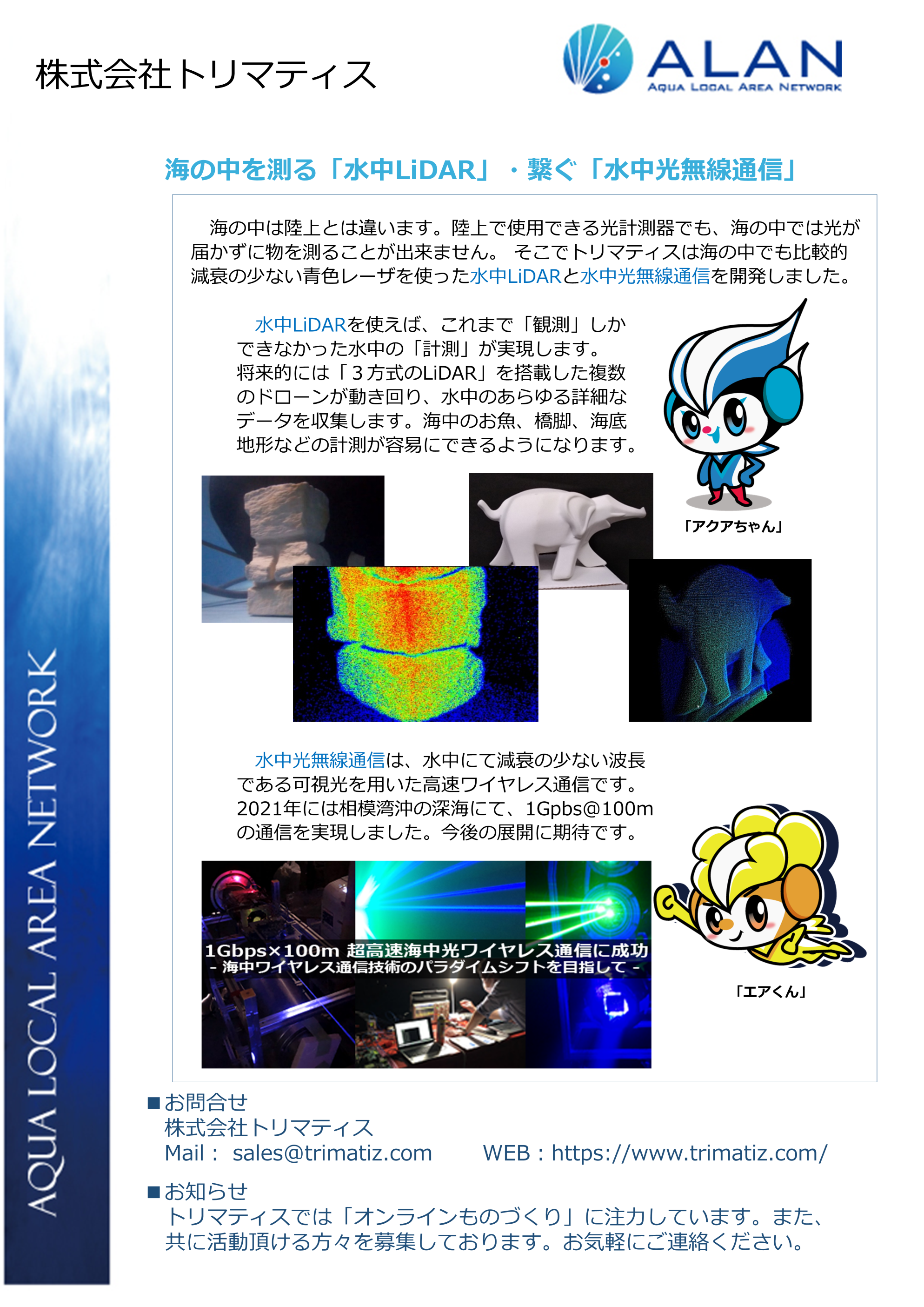 製品トリマティス:海の中を測る「水中LiDAR」・繋ぐ「水中光無線通信」