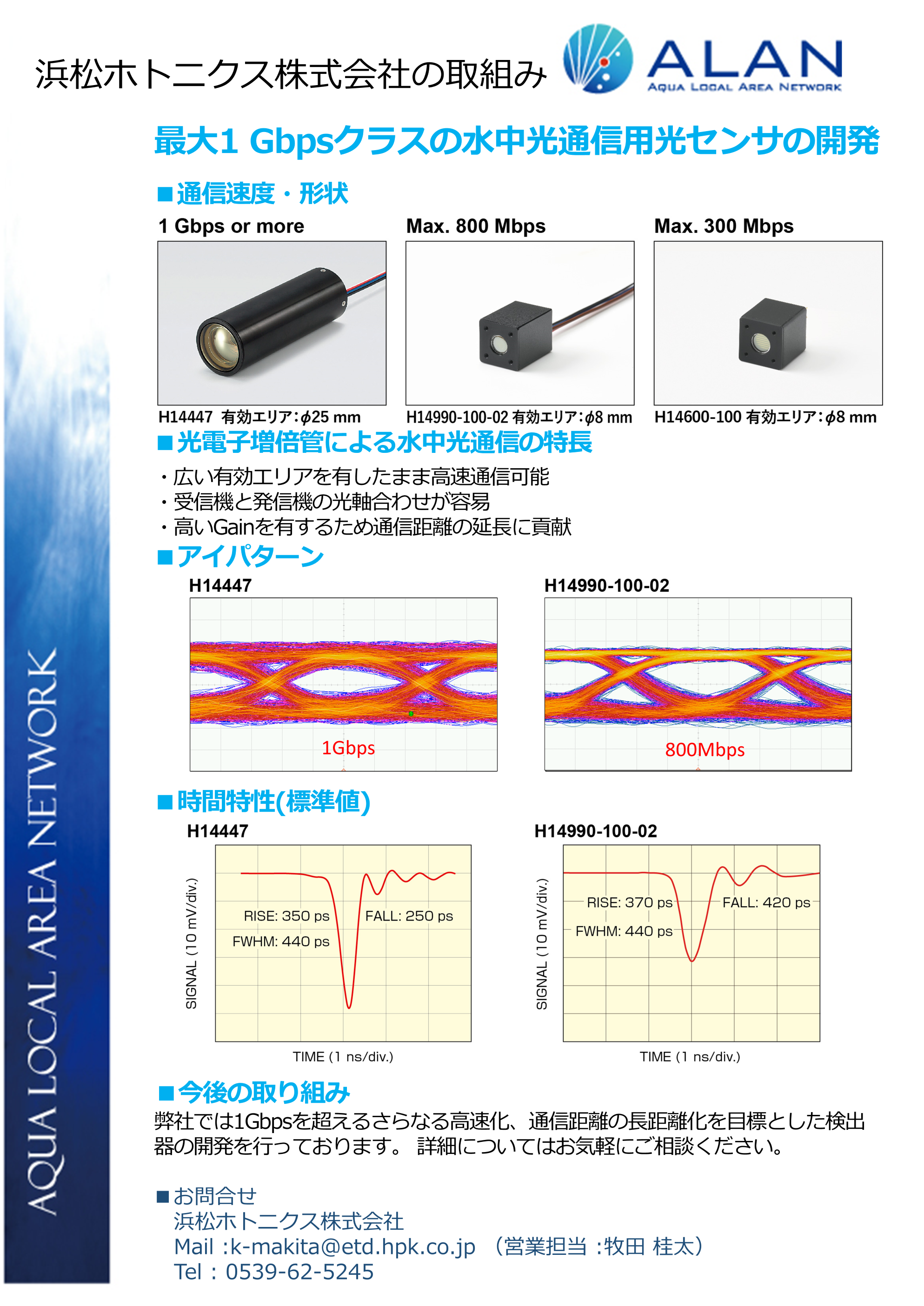 製品浜松ホトニクス:最大1 Gbpsクラスの水中光通信用光センサの開発