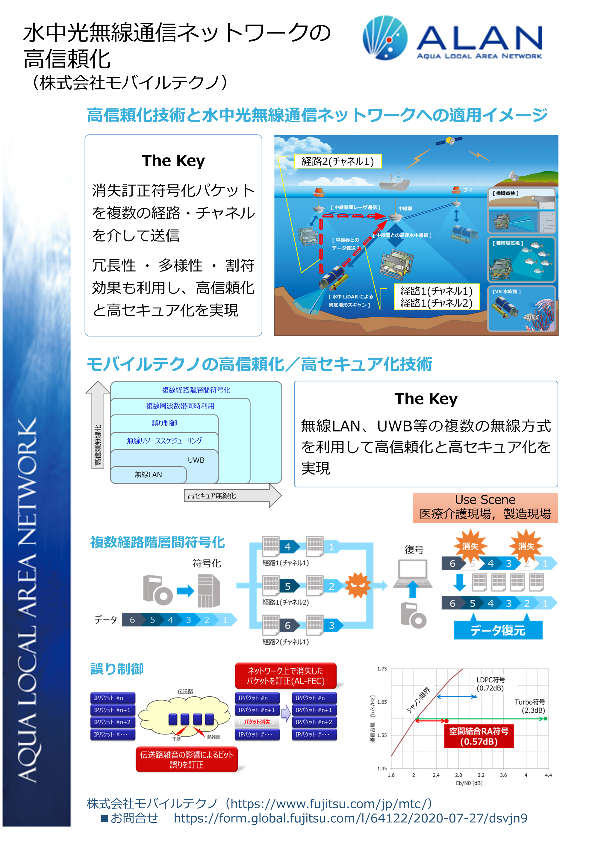 製品モバイルテクノ:高信頼化技術と水中光無線通信ネットワークへの適用イメージ